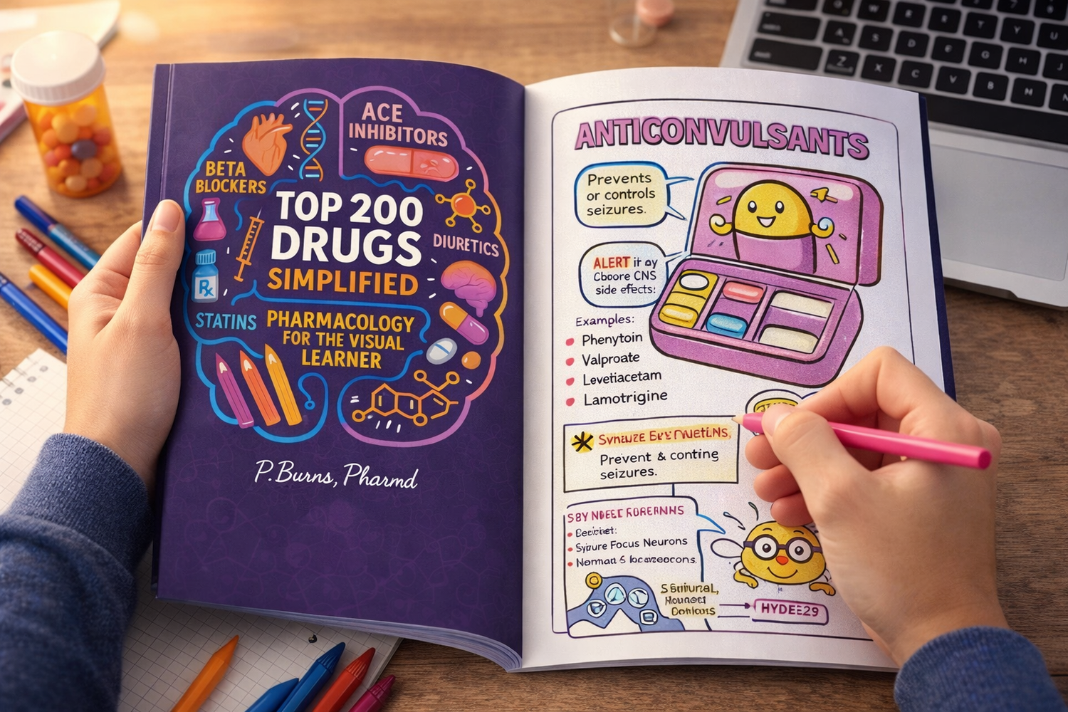 You’ll learn the top 200 most commonly prescribed drugs, including key details like uses, side effects, and how they work — all simplified into visual formats that are easier to remember.